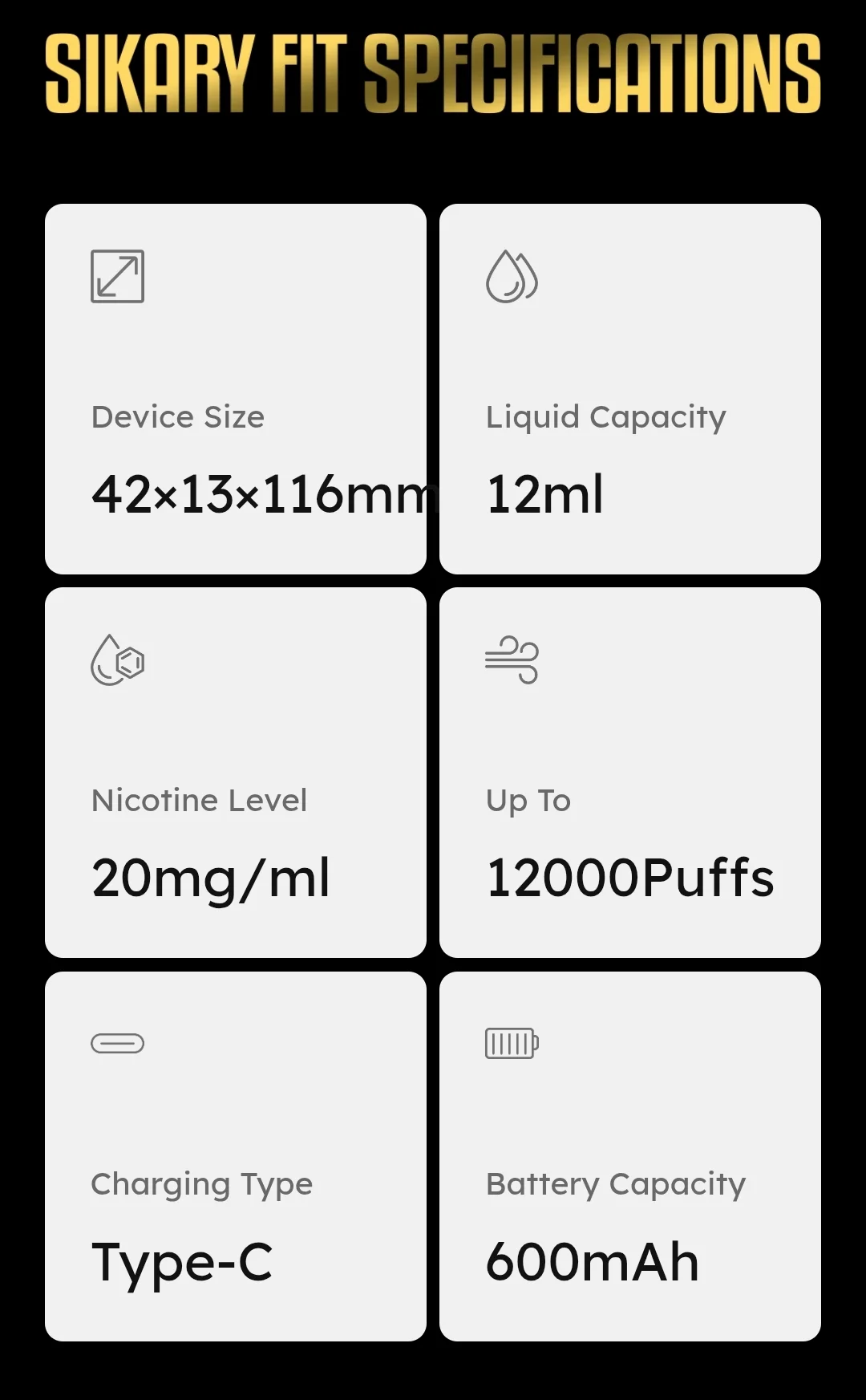 📋 Specifications SIKARY 12000 Puffs