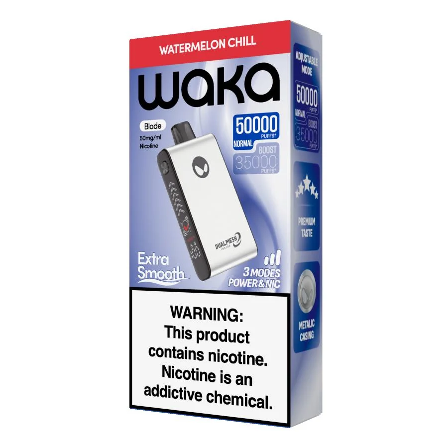 Experience the next evolution of disposable vapes with the WAKA Blade 50000 Puffs — a premium device that delivers massive vapor production, rich flavor, and long-lasting satisfaction. Engineered for heavy users and flavor lovers, this device combines advanced mesh coil technology, smart display, and a rechargeable high-capacity battery for unbeatable performance.